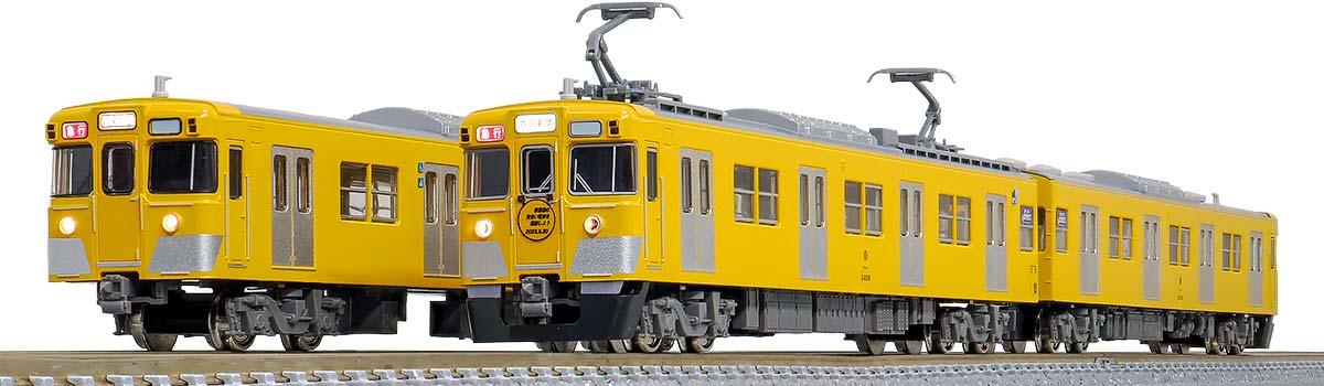 ■クモハ2409の黒色に塗られたスカート・黄色く覆われた側面行先表示器を再現
