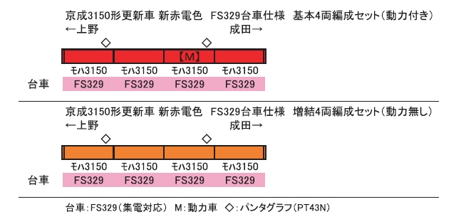京成3150形更新車 新赤電色 FS329台車仕様 増結4両編成セット(動力無し) |